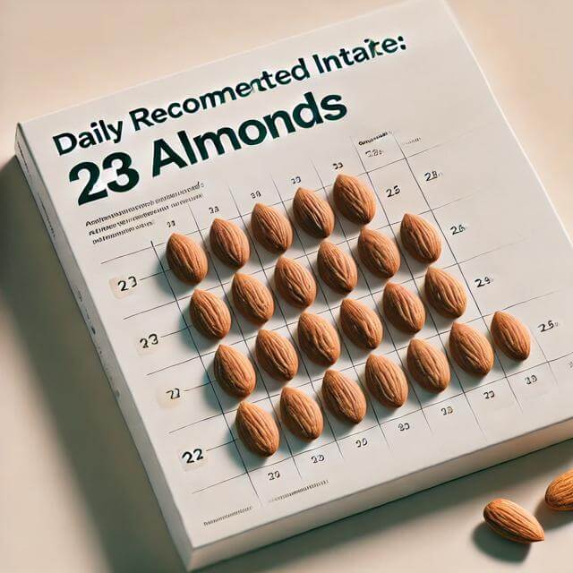 아몬드의 많은 효능을 얻기 위해서는 적절한 섭취량을 지키는 것이 중요합니다. 일반적으로 ◀하루 23개(약 30g)▶의 아몬드를 섭취하는 것이 적당하며, 이 양은 소량의 간식으로 이상적입니다.