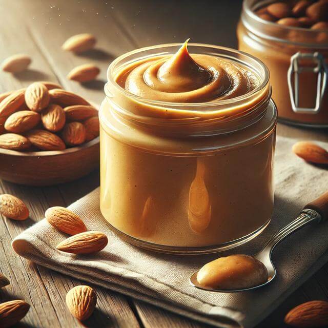 2. 아몬드 버터: 아몬드를 갈아 버터 형태로 만들어 빵에 발라 먹거나, 과일에 곁들여 간식으로 섭취할 수 있습니다. 아몬드 버터는 건강한 지방을 섭취할 수 있는 좋은 방법입니다.