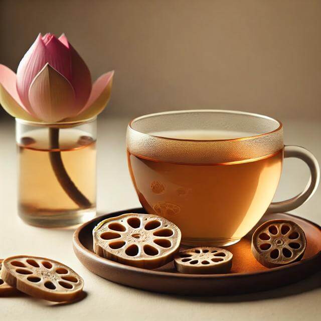 3. 연근 차: 연근을 잘게 썰어 말린 뒤 차로 우려 마시면 혈액순환을 개선하는 데 도움이 됩니다. 뜨겁게 또는 차갑게 마실 수 있어 사계절 내내 즐기기 좋습니다. 특히 연근 차는 수분 섭취와 동시에 혈액순환 개선에도 효과적입니다.